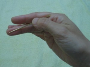 金鍉鍼です。先が丸くなっているので、皮膚に刺さることはありません。